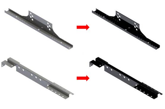 Vi byter färg på Fotplatta (410003) och Läktfäste (410157) till svart.