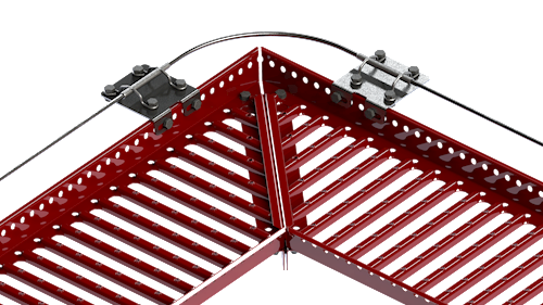 Vajerhörnet monteras på insida eller utsida av hörn på gångbryggor oberoende av vinkel.