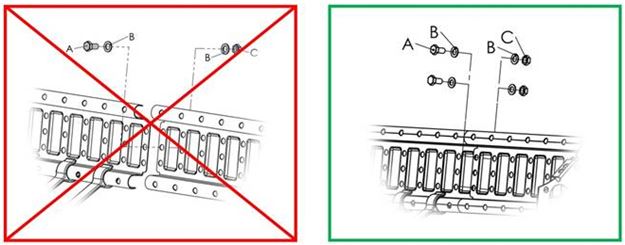 Skarvning av profildurk skall göras med 2 skruvförband.